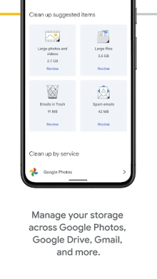 • Manage your existing Google account storage across Google Drive, Gmail and Google Photos.