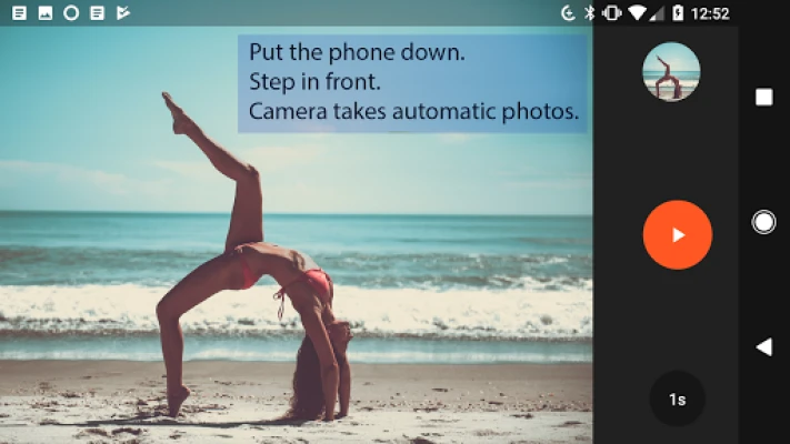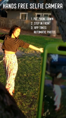 Without having to hold the camera, you are free to show your whole body. You can take motion shots. Want to try to impress your friends with one of those middle in the air jumping photos? Trust that the app will keep taking photo after photo on auto. Interact with your environment on the selfie. Hide behind a tree and peekaboo out. Pretend to chase a squirrel up a tree.
