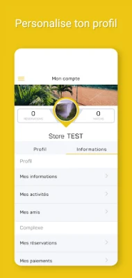 - Consulte les différents cours et réserve ta place - La boutique du club - Les dernières informations - Tes abonnements - Les autres membres du club