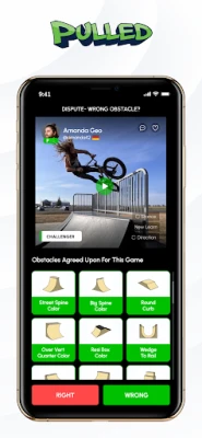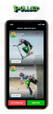 In this game of bike, skate or scoot, players can’t repeat a trick unless it’s on a different obstacle. Any disagreements during this skate, scooter or bike contest are voted on and resolved by other app users. The video feed is used to determine who’s at fault. The player voted against, receives a “fail.” Once this game with dirt jumps has concluded, you can share a compilation of your action sport game to any social media network or even add it to your own profile in Pulled for people to enjoy.